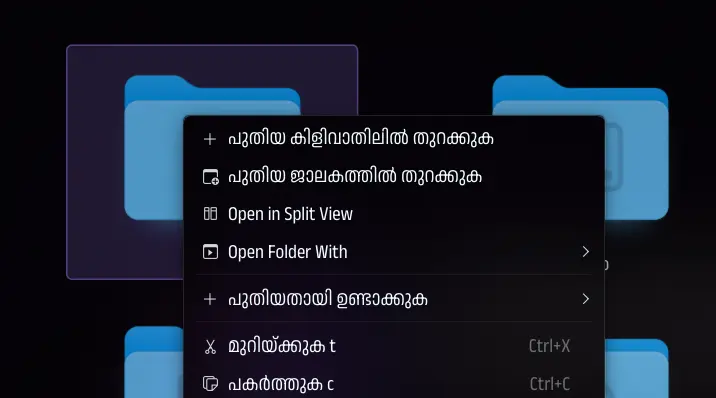 this is only a few. there are others like “ശബ്ദ നിയന്ത്രണം” for “Volume Control”, “വിജയിച്ചു” for “Success”, “സംരക്ഷിച്ചു/സൂക്ഷിച്ചു” for “Saved”, “വിന്യാസരീതി” for “Sorting”, “ഗുണഗണങ്ങൾ” for “Properties” and so on.